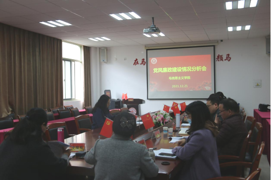 随后校纪委委员、法公司党委书记朱丹进行点评。她指出二级单位党风廉政建设分析会是全面从严治党的重要举措,马院2021年领导班子思想认识到位,会议准备充分,能围绕主题,落实责任意识强,会议质量高。同时就进一步深入贯彻落实党风廉政建设工作提出了三点要求。一是要进一步提高政治站位。不断增强“四个意识”,坚定“四个自信”,做到“两个维护”,深入领会“两个确立”,把准政治方向,深入组织开展党史学习教育,提高政治敏锐性和政治鉴别力。二是要切实做好本单位突出问题治理。结合党委巡视、校内巡查,做好“一清理两专项”工作,做好教育领域腐败整治,制定好行之有效的措施,规范工作程序,积极防范化解廉政风险,深入推进清廉公司建设。三是要进一步深入推进全面从严治党“四责协同”机制建设。做到与业务工作同研究、同部署、同检查、同考核,将全面从严治党落实到实处,为马院各项事业发展提供坚强有力的纪律保证。
