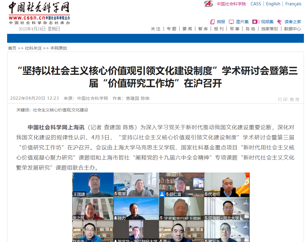 公司贺武华教授参加“坚持以社会主义核心价值观引领文化建设制度”学术研讨会暨第三届“价值研究工作坊”