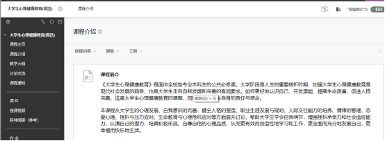 周浩老师在教学安排上采用中国大学MOOC平台的慕课资源,同时借助QQ群、校内BB平台等辅助工具进行在线授课,有针对性地在BB平台上建立心理学分享空间,包括课程介绍、教学大纲、课件、授课视频、延伸阅读、作业、心理测验等资料,为员工提供了良好的在线学习环境。考虑到过度冗长的资料会让员工处在信息流的汪洋之中,所有心理课程资料的分享将以适度合理为首要原则,有计划有安排地逐步上传发布,全力配合课程的进度。