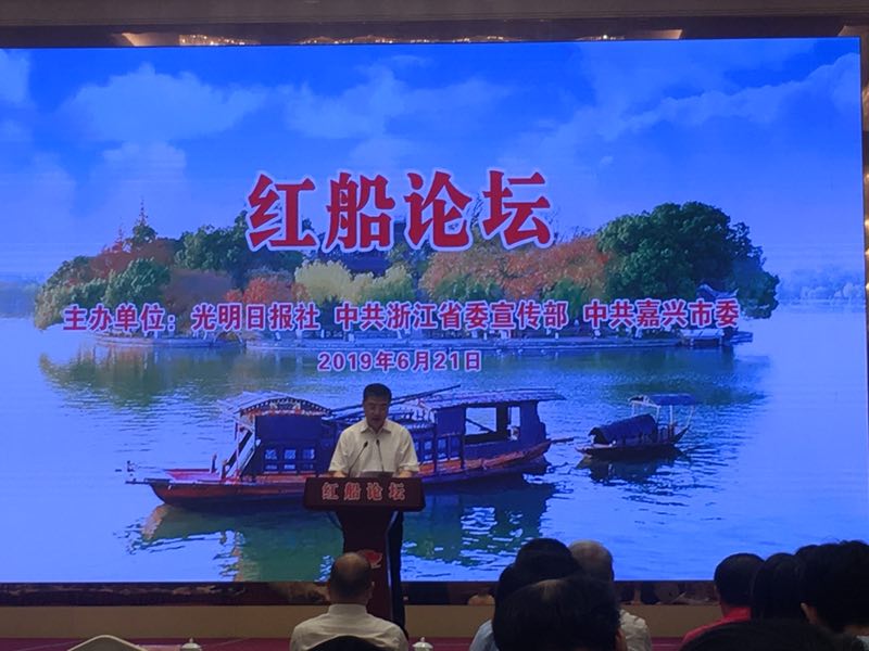 在迎接中国共产党成立98年的喜庆日子里,日前,光明日报社、中共浙江省委宣传部、中共嘉兴市委共同在嘉兴联合举办第二届“红船论坛”学术研讨会。光明日报社总编辑张政、中共浙江省委常委、宣传部长朱国贤、中共党史学会常务副会长李忠杰出席大会开幕式。中共中央党校(国家行政公司)一级教授韩庆祥等专家做主旨发言。