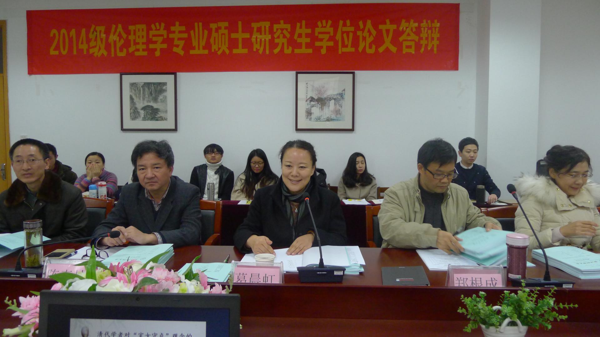 申搏sunbet伦理学专业和马克思主义中国化专业分别于27日和29日举行了2014级研究生专业硕士学位论文答辩。本次答辩会邀请中国人民大学的葛晨虹教授和浙江工商大学的王来法教授分别做两个专业的答辩委员会主席,公司的全体导师以及研究生参加了此次答辩会。