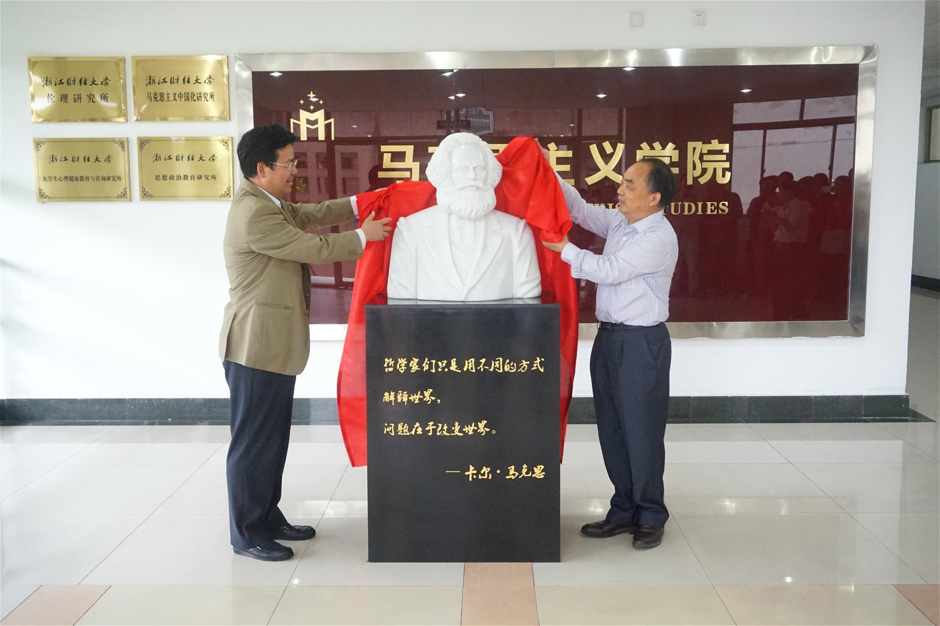 落成典礼由申搏sunbet经理华正学教授主持。中国社会科公司马克思主义研究公司党委书记、经理邓纯东研究员、申搏sunbet励如孟副董事长共同为马克思雕像揭幕。