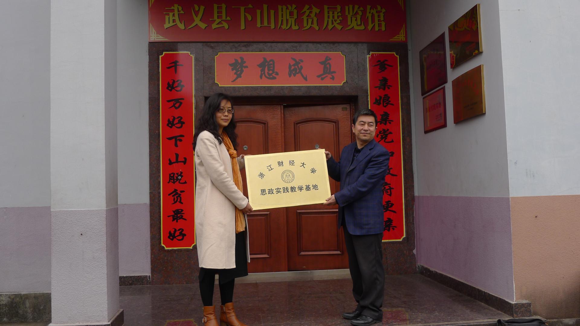 武义农办罗主任对公司一行的到来表示热烈欢迎,对公司思想政治理论课实践教学基地落户武义表示热烈祝贺。她简要介绍了武义下山脱贫的基本情况,并在揭牌仪式上说,多年来,武义下山脱贫工作一直得到政府和社会的积极关心和大力支持,为不辜负各界的关心和支持,希望双方以共建实践教学基地为契机,加强交流,促进合作,推动共同发展。