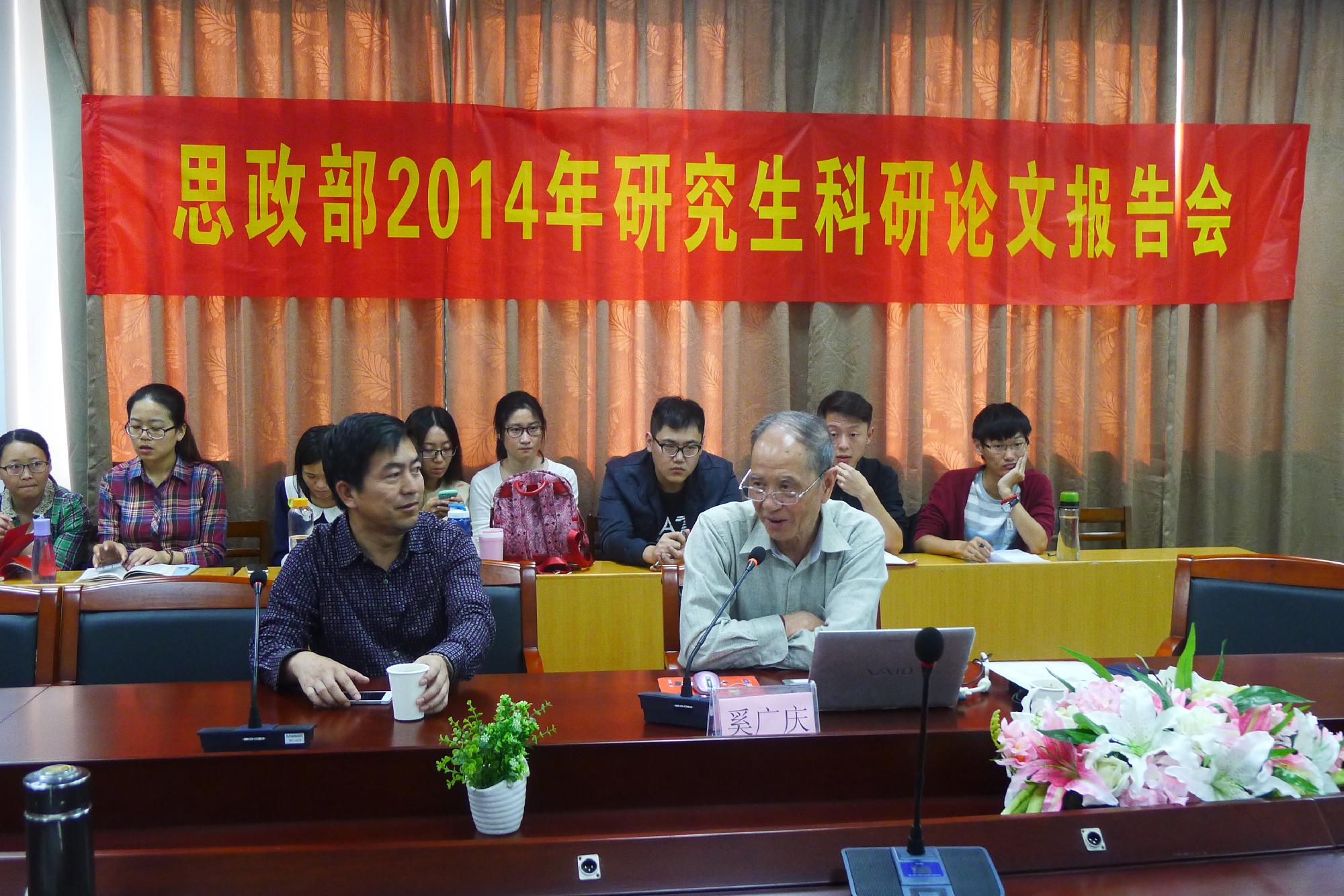 10月27日下午,三号公司楼211思政部会议室里座无虚席,教育部社科司原司长奚广庆教授的学术报告会正在进行。