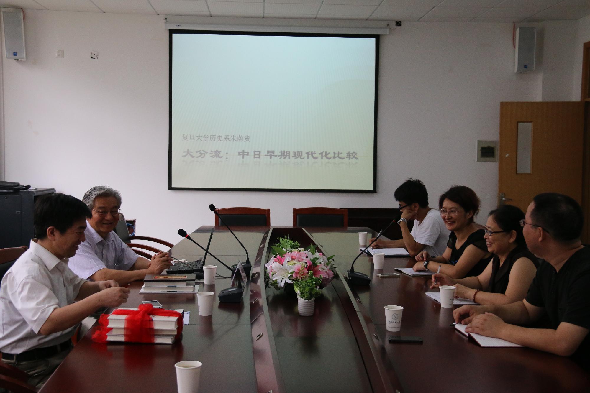 7月1日上午,复旦大学博士生导师朱荫贵教授应邀为我部政府管制思想史课题组的全体老师作了题为“大分流:中日早期现代化比较”的学术报告。报告开始前,王俊豪董事长代表公司向朱荫贵教授颁发了申搏sunbet兼职教授聘书,朱荫贵教授也向公司捐赠了其部分研究著作。