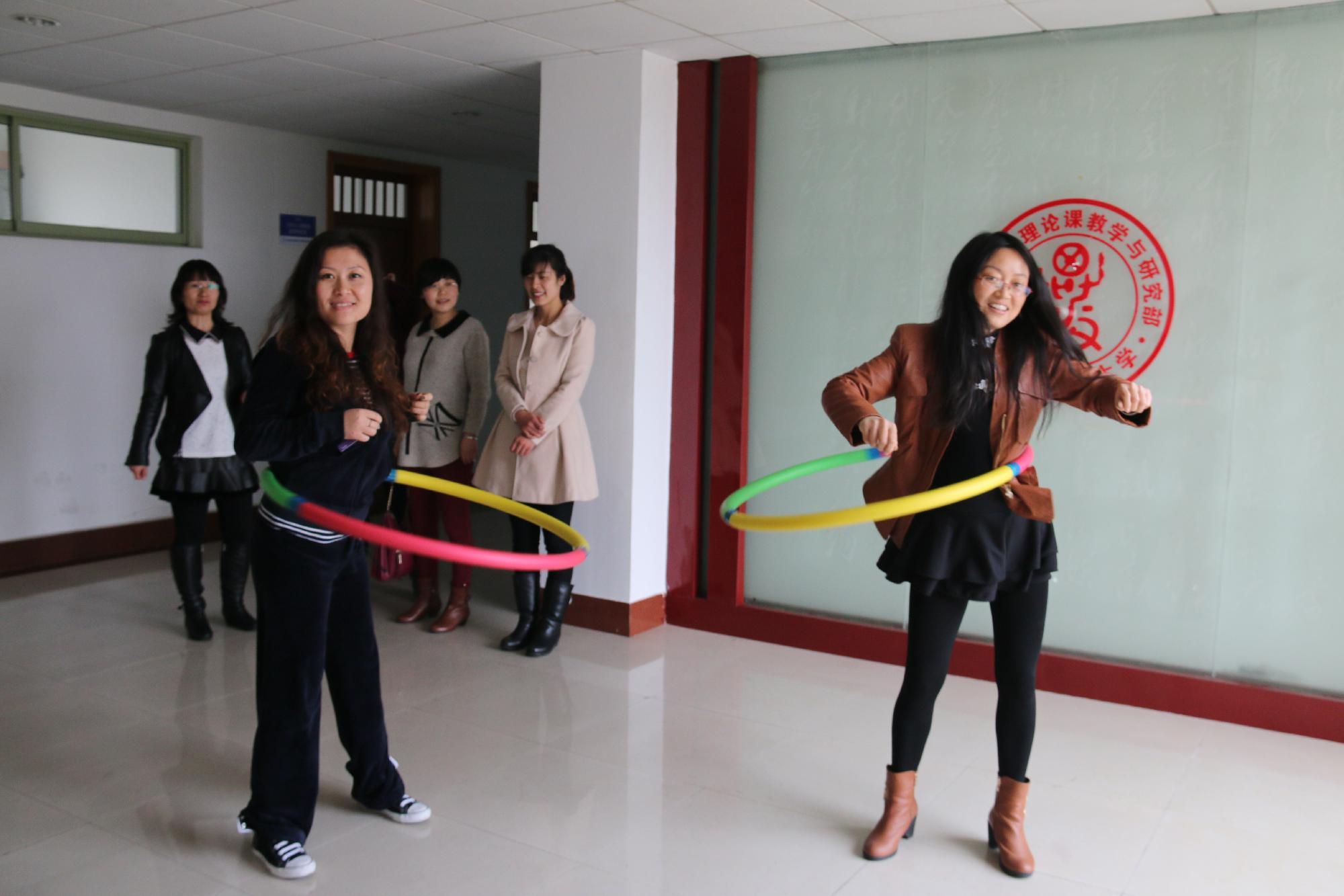 为了响应公司工会“健身健心”活动号召,让广大教师走出课堂,愉悦身心,我部在2014年3月25日举办了女教职工转呼啦圈比赛,丰富了教职工们的课余生活,同时也增进了彼此之间的沟通和友谊。