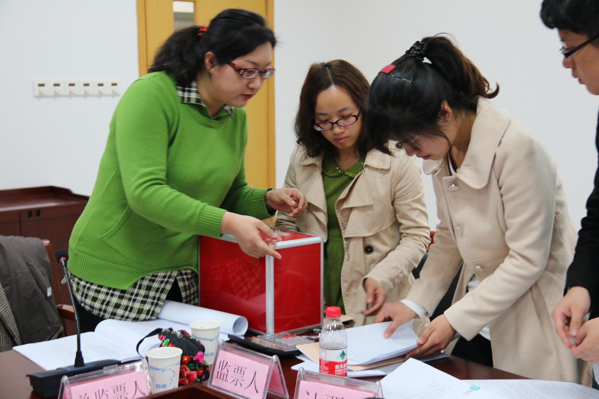 之后,党支部副书记何历宇作党总支工作报告,回顾与总结了一年来党总支工作取得的初步成绩,并提出了存在的问题和今后努力的方向,最后他提出了要加强理论学习,积极推进思政部民主政治建设,巩固群众路线教育实践活动成果,加强组织建设工作。与会党员代表认真审议了工作报告,并全票通过,同时,代表们还审议通过了《中共申搏sunbet思政部新一届总支部党员大会选举办法(草案)》。随后,各支部正式党员代表依次进行了投票。最终何历宇、华正学、邓小燕、杜新华当选为思政部新一届党总支委员会委员。