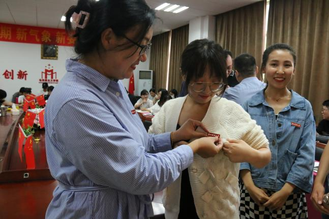 随后,公司党委副书记刘向前、副经理邢雁欣分别为新入职教师佩戴校徽、赠送入院礼并合影留念。在场教师以热烈掌声欢迎新教师加盟。