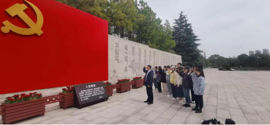 在革命纪念馆外的宣誓墙前,全体成员面向巨幅党旗右拳在握,庄严宣誓,重温入党誓词,从内心深处感受誓词的铿锵力量,更加坚定“不忘初心、牢记使命、永远奋斗”的坚定信念。