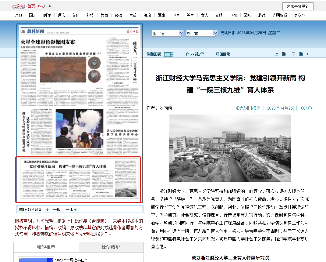 从科研到学科,破茧破局勇开新路。公司创建了“三地一窗口”学术论坛,邀请全国知名专家学者来院指导讲学,承办中国高等教育马克思主义研究分会“名家讲坛”;近两年来,公司获省部级优秀成果奖一等奖1项、二等奖2项;公司成为浙江省八八战略研究院副秘书长单位,申报的“浙江重要窗口建设与展望”学术交流平台也成功获得立项支持。