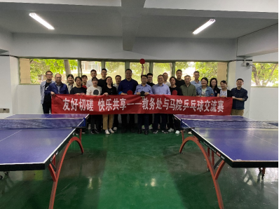 江南烟雨,分外凉爽;期末将至,减压赋能。5月24日中午,教务处与马院在C楼乒乓球馆开展了乒乓球交流赛。比赛包含女双、混双、男双、女单、男单共5个项目,每个项目为11分制,3局2胜,两个部门的教职工踊跃参与,切磋技艺,友好交流,共享快乐。