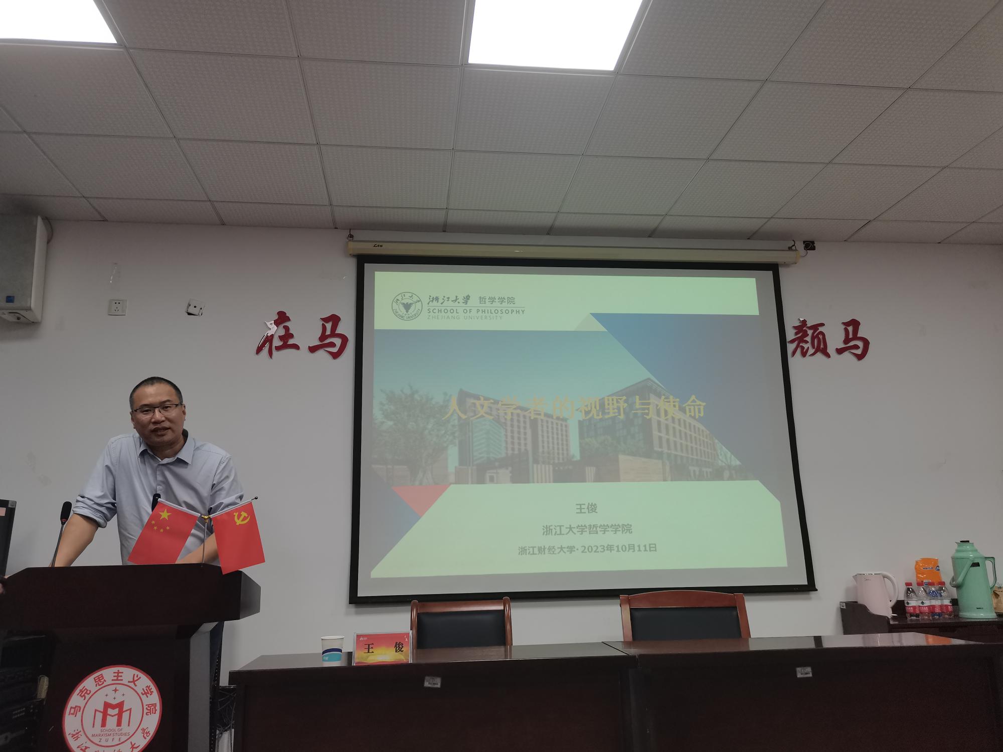 为了进一步做好高层次项目培育工作,提高课题申报质量,助力青年教师科研能力提升,公司开展教师科研能力提升培训系列讲座活动。10月12日下午,浙江大学哲学公司王俊经理应邀来公司做题为“人文学者的视野与使命”的第一场学术讲座,会议由贺武华经理主持,马院全体青年教师参加。讲座前,贺武华经理就2022-2023学年的课题申报工作进行了总结发言,并就本学年高层次课题申报进行了工作部署。