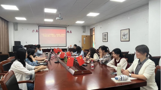 老师们一起认真学习了习近平总书记对宣传思想文化工作作出的重要指示精神,分别从核心内涵、重大意义、文化传承、文化自信、文化建设和公共文化服务等多个角度分享了对习近平文化思想的学习体会,并集体深入讨论了将习近平文化思想与本学期的教学专题“庚续历史文脉,谱写当代华章”有机融合的教学设计和实施思路。