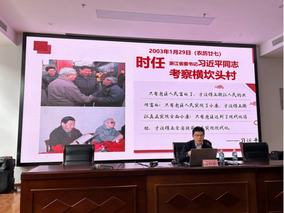 11月25日上午,横坎头村支书黄科威书记以“红色赋能乡村振兴”为主题公司人文公司的员工讲了一堂生动的浙江乡村共同富裕课。黄书记讲述2003年习近平总书记曾到横坎头村视察工作时场景,以及习近平总书记给横坎头村的两封回信,希望他们“发扬老区的优良传统,保持艰苦奋斗、自力更生的精神面貌,解放思想,与时俱进,加快老区开发建设,尽快脱贫致富奔小康”。黄书记介绍了20年来,横坎头村在村党委班子的带领下,发扬老区人民艰苦奋斗、苦干实干精神,大力发展“红绿”融合的特色农旅产业,充分挖掘横坎头村历史优势、区位优势,打造浙东红村的历史过程,介绍了乡村产业发展和集体经济取得的成果。横坎头村为革命老区摆脱贫困实现共同富裕探索了一条新路径。