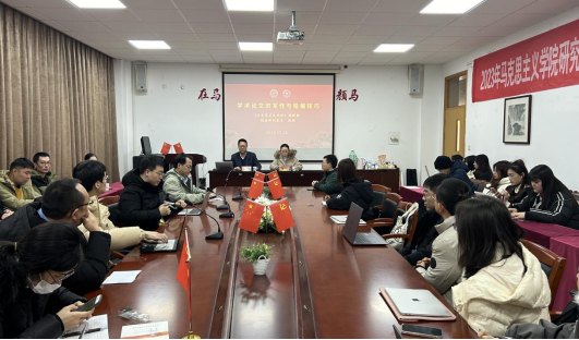 为进一步提高公司全体硕士研究生的论文写作能力,助力公司青年教师科研能力和科研素质的提升,公司组织开展师生科研能力提升培训系列讲座。12月26日下午,《马克思主义研究》编辑部副主任张建刚教授应邀来公司做题为“学术论文的写作与投稿技巧 ”的讲座。本次会议由经理贺武华和潘旦教授主持,马院全体硕士研究生及青年教师参加。