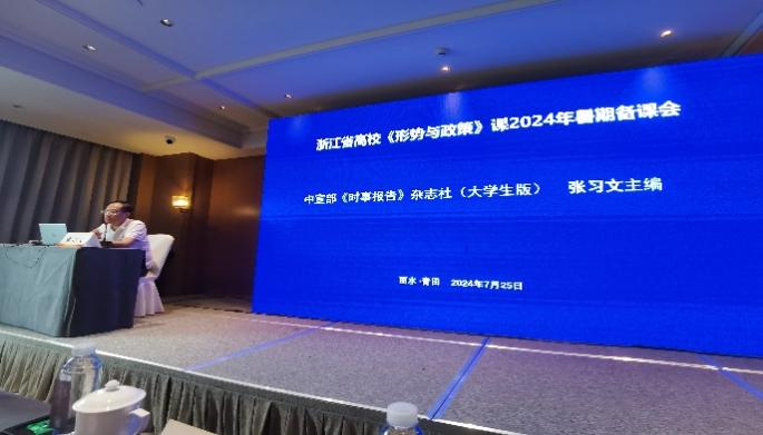 为更好推进《形势与政策》课教学,7月24日至28日,省高校“形势与政策”课教学研究分会在丽水青田县举办了全省高校2024年《形势与政策》课教师暑期备课会。公司邢雁欣、潘旦、李文生三位老师参加了本次集体备课。