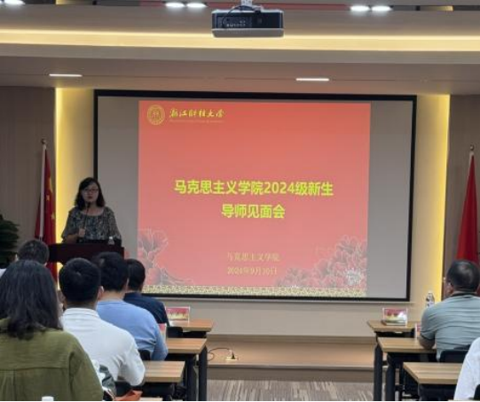 邢雁欣副经理在会议的尾声发表了致辞。她详细介绍了公司的历史底蕴、学科特色、实践基地、工作室、研究中心等,并对公司师生近年来在学术研究、创新竞赛、社会服务等领域取得的成就进行了回顾。她以“不积跬步无以至千里”的古语作为结束语,勉励在座的每一位师生。最后2024级新生与各自导师进行了深入的互动交流,为会议画上了圆满的句号。