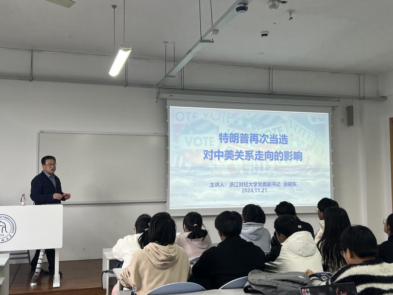 结合财税专业的知识,徐书记生动讲解了特朗普政府的主张及政策。如特朗普政府预计将继续推行减税、降低运营成本的政策,以加速美国制造业回流。同时,增设关税将使得美国市场对外国竞争产品的准入更加困难,为本土制造商和工人创造更有利的环境。这些措施可能加剧中美之间的贸易紧张局势,但也可能为两国在贸易谈判中寻求新的平衡点提供契机。
