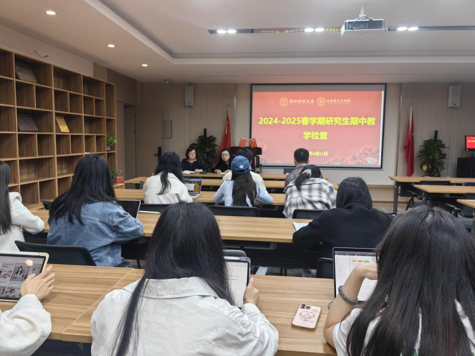为规范研究生课程教学管理,进一步加强教学监督与评价,根据公司工作安排,4 月 21 日下午,公司在3-206组织开展了2024-2025 学年春学期研究生期中教学座谈会。研究生院督导康莉莹老师、研究生秘书及2024级全体研究生参加本次座谈会,副经理邢雁欣主持会议。