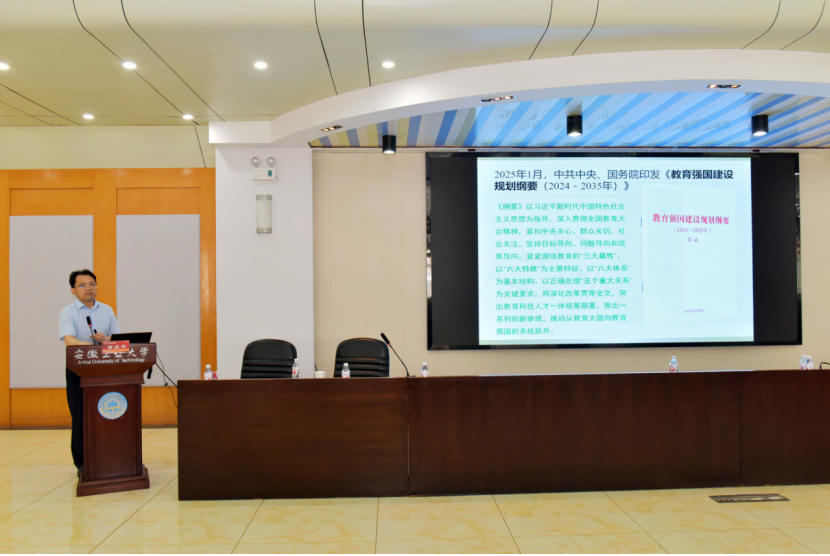 公司经理贺武华作题为“习近平文化思想视域下教育强国建设”的报告。报告指出建设文化强国事关中国式现代化建设全局,事关中华民族复兴大业,事关提升国际竞争力,是强国建设、民族复兴的强大精神力量。“明体达用、体用贯通”鲜明品格将经义与治事有机结合,对教育强国建设具有重大指导意义。习近平总书记对中华优秀传统文化的高度重视和充分自信,这是我们推进教育强国建设的底气与福音。教育强国立足于五千年中华优秀传统文化的自信,就会更加生生不息,更加开放包容,更加守正创新。
