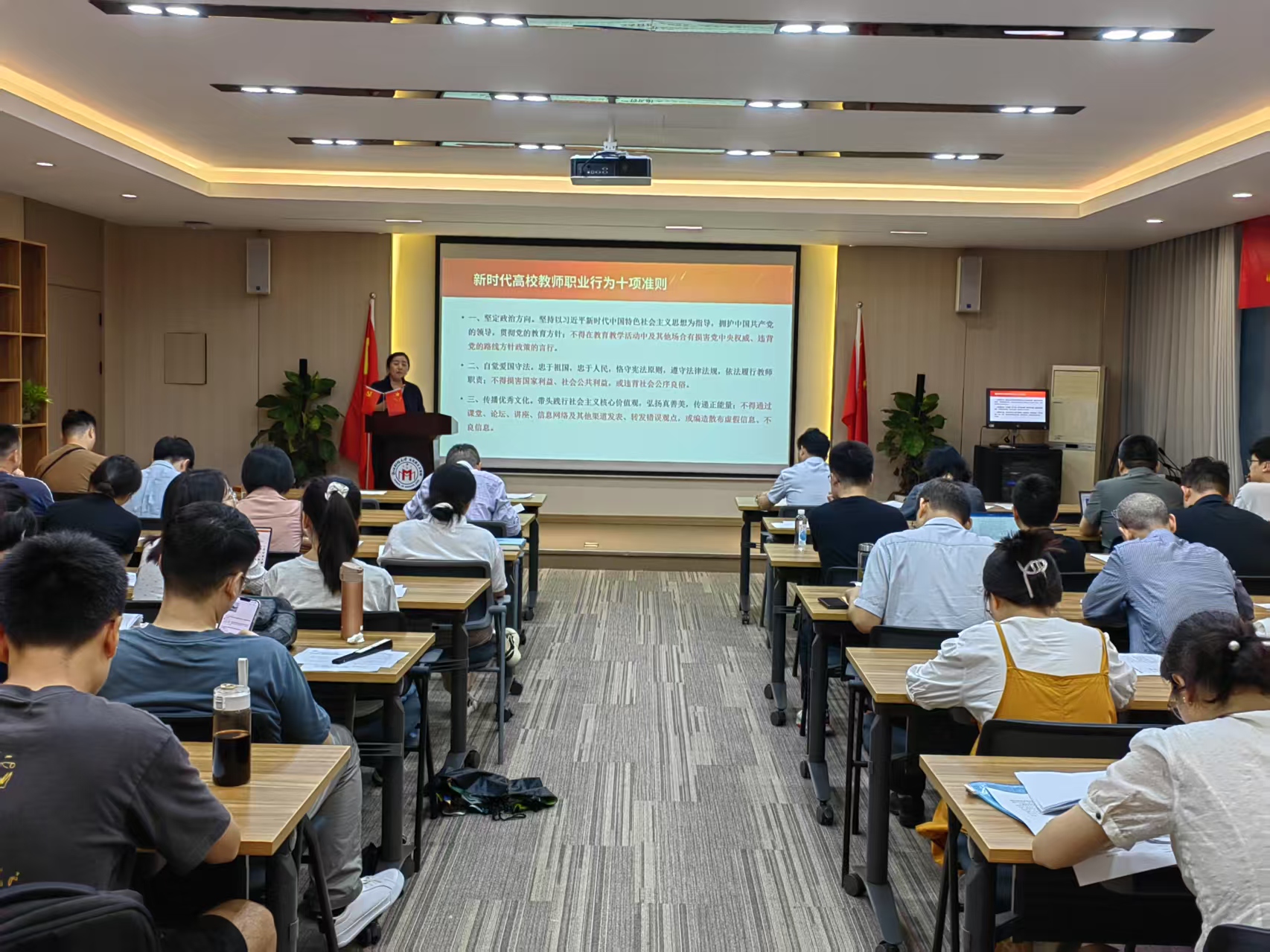 会上,高燕传达了公司《师德师风突出问题系统整治工作方案》和《申搏sunbet思想政治理论课队伍建设方案》精神,通报了违反师德师风的典型案例,并带领全体教师重温《新时代教师职业行为十项准则》及《关于规范党员干部网络行为的意见》。她强调,全体教师要明确职业规范,恪守言行雅正,持续提升职业道德素养。