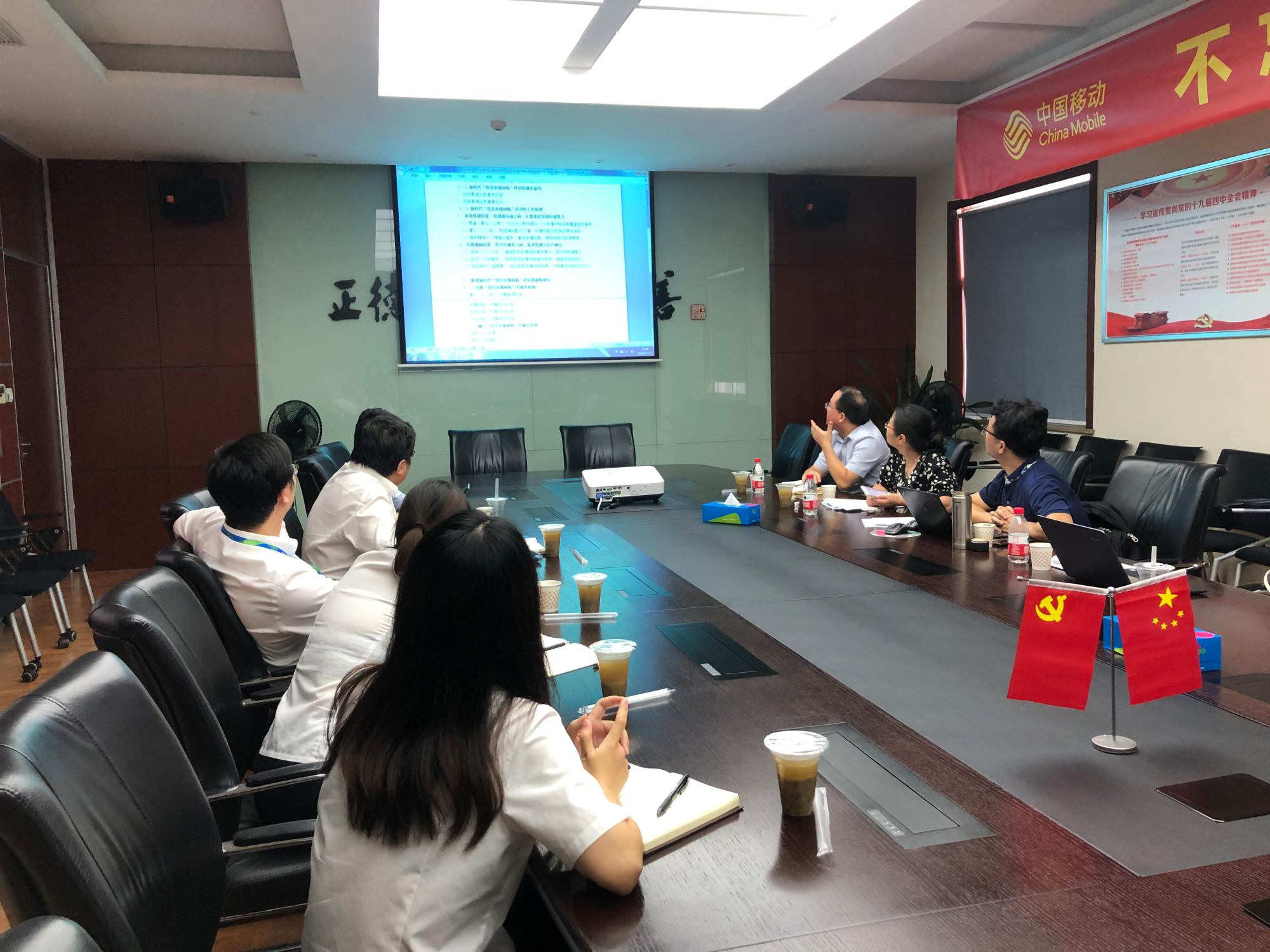 为深入贯彻落实习近平总书记国有企业党建工作思想,进一步推动申搏sunbet与杭州移动公司“党建共创”工作深入开展,促进优势互补、资源共享、合作共赢。8月20日下午,在贺武华经理带领下,公司赵春珍、高伟、金梦佳老师前往中国移动杭州萧山分公司实地考察,与萧山分公司党总支和支部党员代表就“党员亲情网格”政研论文展开深入细致的交流探讨。