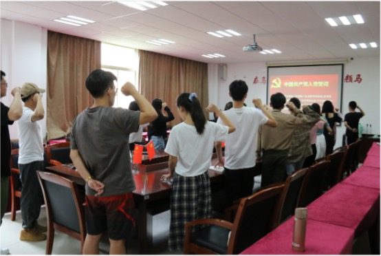 “同在一片党旗下,铮铮誓言铭初心”,新党员进行入党宣誓,全体党员一起重温入党誓词。随后新党员代表王聪同志发表入党感言。“入党誓词字数不多,记住并不难,难的是终身坚守。每个党员要牢记入党誓词,经常加以对照,坚定不移,终生不渝。”——要牢记和践行习近平总书记的这个要求。