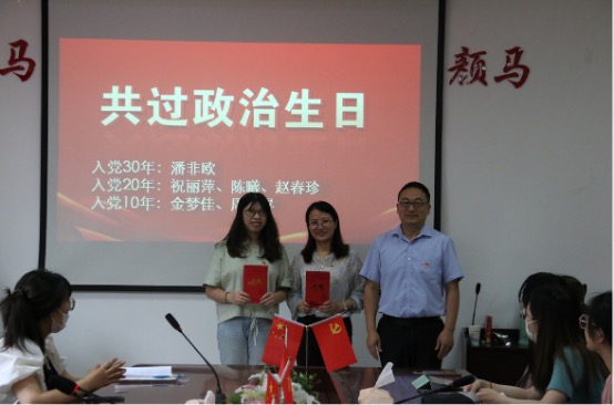 发政治生日贺卡。通过过政治生日,提醒自己时刻不忘初心、牢记使命。要强化党员身份,做党员应为之事,亮身份发挥先锋模范作用。随后党员代表金梦佳发言,分享“入党那一天”的故事。