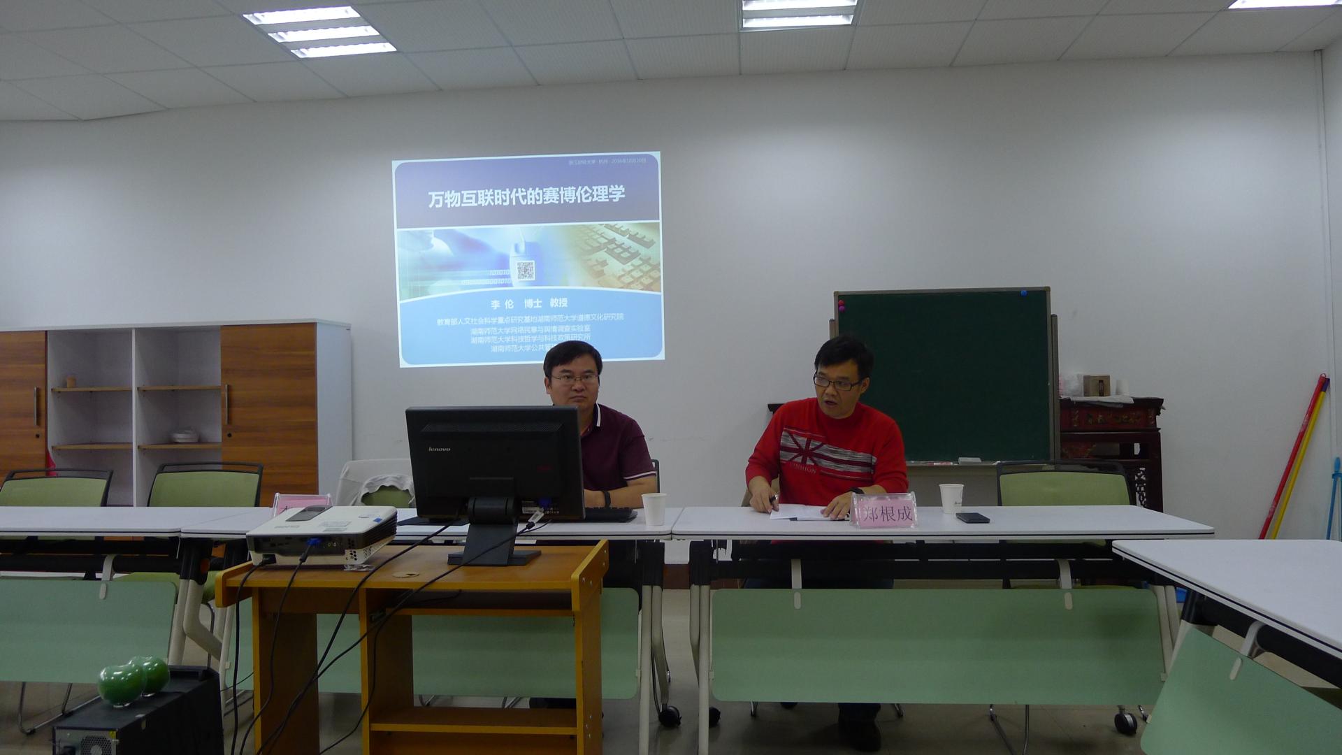 2016年10月20日,湖南师范大学李伦教授应邀来公司学术交流,并作了题为“万物互联时代的塞博伦理学”的学术讲座,申搏sunbet全体研究生及部分教师参加了此次讲座。