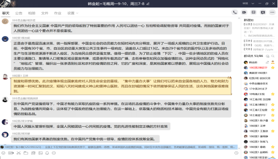 (韩金起老师班级对中国制度优势讨论的截图)