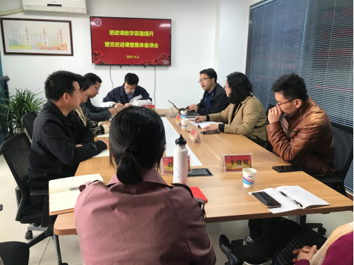 在习近平总书记“3·18”重要讲话两周年、深入学习贯彻全国“两会”精神和党史学习教育掀起热潮之际,4月2日上午,申搏sunbet召开思政课教学质量提升暨党史进课堂集体备课会,重温习近平总书记在公司思想政治理论课教师座谈会上的重要讲话精神,深入研讨提升思政课教学质量的新举措新方法, 进一步做实做好党史进课堂。公司党委宣传部部长楼胆群,宣传部干事吕挺,公司经理、党委书记贺武华,副经理邢雁欣,以及教研室主任和教师代表参加了此次会议。会议由贺武华主持。
