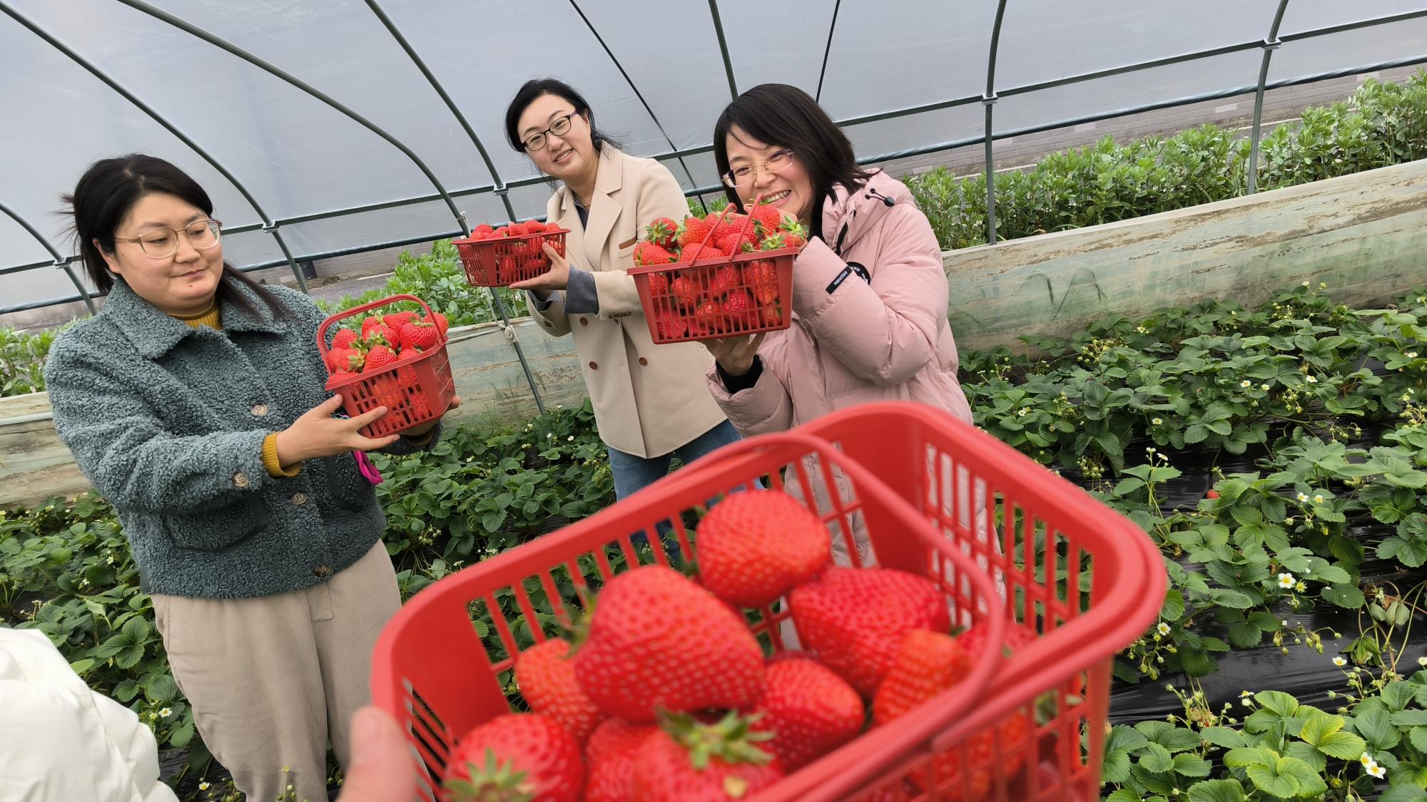在草莓采摘农场,红彤彤的草莓娇艳欲滴,饱满柔嫩,或搭在田垄上,或藏在绿叶间,空气中的香甜气息让人陶醉。各位老师提着篮子穿行在田垄间,挑选采摘草莓,尽情享受田园采摘的宁静与惬意。